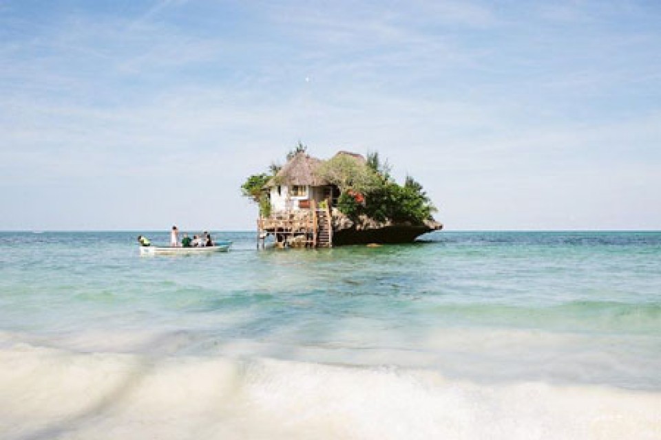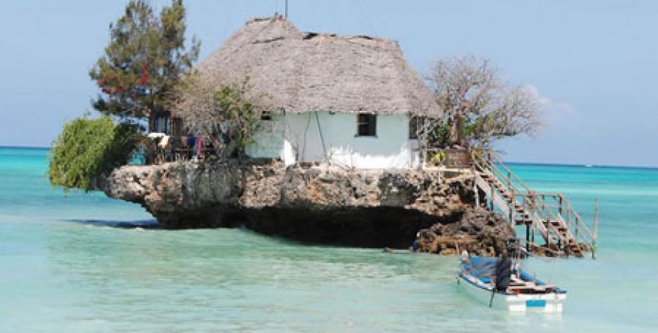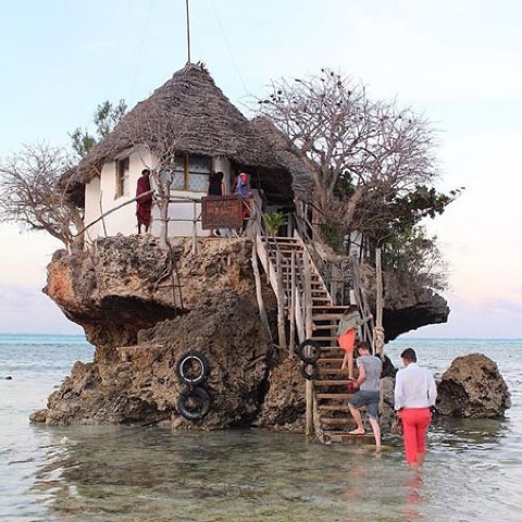 این مکان بی تکلف و ساده در نگاه اول شبیه به کلبه ایی در وسط آب است که بدون صاحب رها شده است. اما در واقع این ساختمان یک رستوران در زنگبار به نام رستوران راک است که 23 فوت بالاتر از اب دریا در اقیانوس هند ساخته شده است و دارای منظره ایی بی نظیر روح نواز و روشن است.