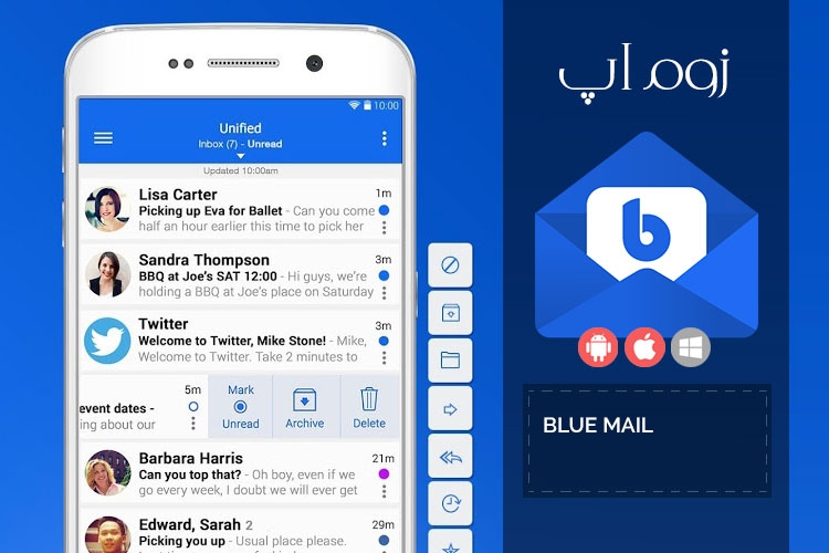 ایمیل را میتوان بهترین و استانداردترین روش تماس در سراسر دنیا دانست که بدون هیچ محدودیت یا هزینهای به شما این امکان را میدهد تا تنها با یک آدرس چند حرفی، پنجرهای باز به روی دنیای تکنولوژی داشته باشید و افراد مختلف از هرکجای دنیا قادر به تماس با شما باشند. مایکروسافت و گوگل و یاهو سه غول دنیای ایمیلها هستند که احتمالا کاربری وجود ندارد که در حال خواندن این مطلب باشد و حداقل در یکی از این سه سرویس، ایمیلی نداشته باشد. اما همانطور که بسیاری از ما تمایل داریم تا خط تلفن شخصی و کاریمان جدا باشد، کاربرانی هستند که چندین ایمیل مختلف دارند، برای مثال یک ایمیل در گوگل برای دسترسی به گوگلدرایو، یک ایمیل در مایکروسافت برای دسترسی به اسکایپ و… . مسلما برای این افراد مدیریت این ایمیلها در روز امری است بسیار وقتگیر که نیازمند مراجعهی جداگانه به سایت هرکدام از این ایمیلها است. به همین منظور اپلیکیشنهای مختلفی برای مدیریت چندین اکانت ایمیل به صورت یکجا برای کامپیوتر و موبایل ساخته و منتشر شده که Blue Mail یکی از آنها است.