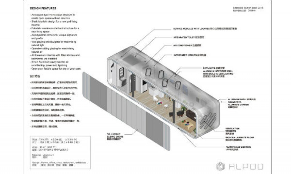 نکته دیگر در مورد خانه های کپسولی اینکه می توان آنها را می توان روی هم چید و یک مجتمع تشکیل داد. در حال حاضر یکی از نمونه های ALPOD در نمایشگاه دوسالانه هنگ کنگ و شنزن 2015 که از 11 دسامبر آغاز گشته و تا 28 فوریه هم ادامه دارد، به معرض نمایش گذاشته شده است.