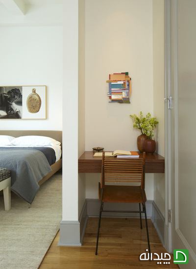 فرورفتگی های دیواری که در اتاق خواب تان قرار دارند بهترین مکان برای قرار گرفتن میز کار است. میز کاری برای نوشتن یادداشت های روزانه، لیست خرید فردا یا خواندن کتابی قبل از خواب، این فرو رفتگی های می توانند به شما کمک کنند تا به صورت کاملا نا محسوس فضای اتاق خواب را از فضای میز کار جدا کنید، فقط کافی است تا به این فرور فتگی ها اعتماد کنید.